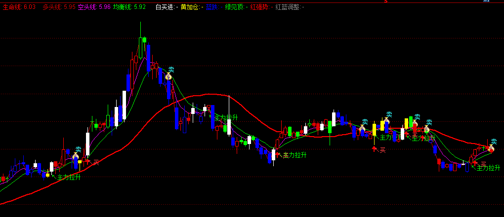 STICKLINE(C>=生命线 AND C>=O,C,O,2.5,0),COLORRED;