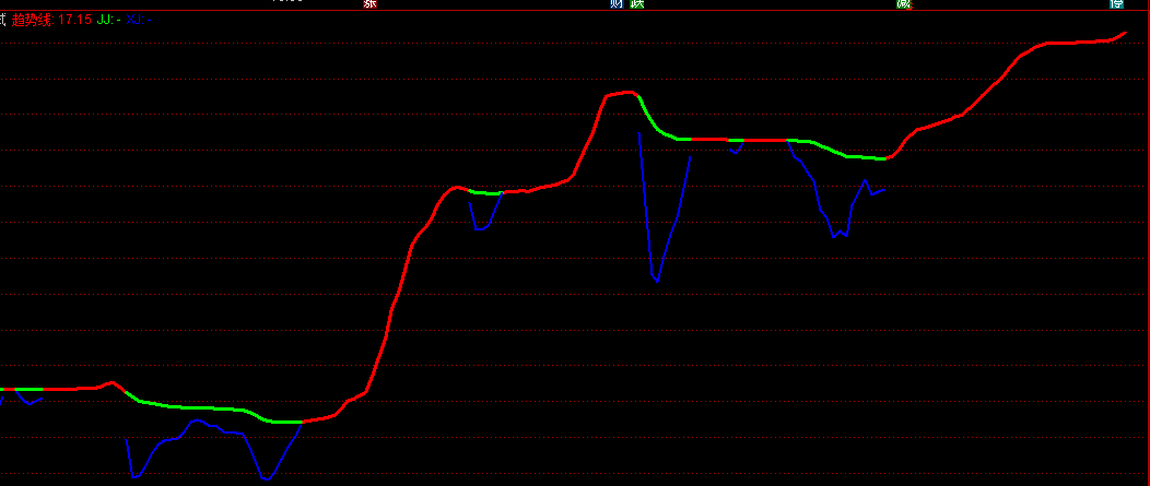 JJ:IF(CXH<=趋势线,趋势线,DRAWNULL),LINETHICK3,COLORGREEN;