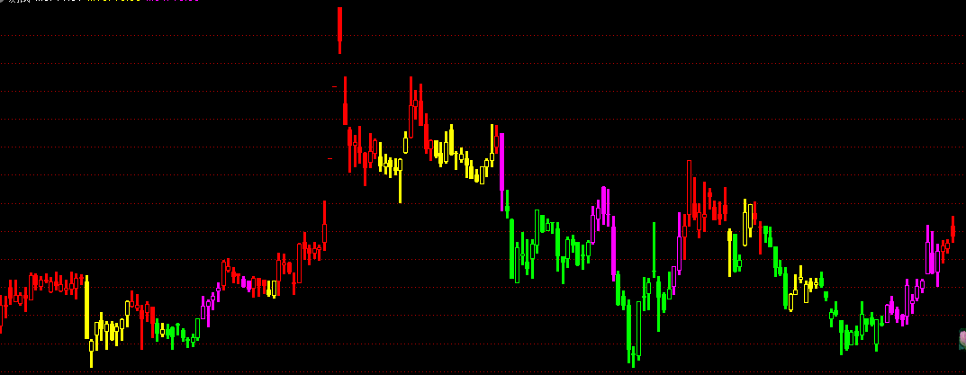 STICKLINE(M3>=M13 AND M34<REF(M34,1) AND C>=O ,O ,C ,3 ,1 ),COLORMAGENTA;