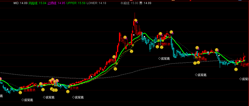 风险线: MA(CLOSE,13),LINETHICK3,COLORGREEN;