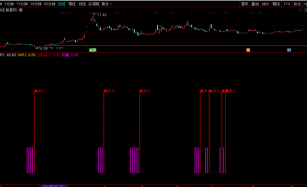 DRAWTEXT(CROSS(VAR1,VAR2),80,'★买入'),COLORRED ;