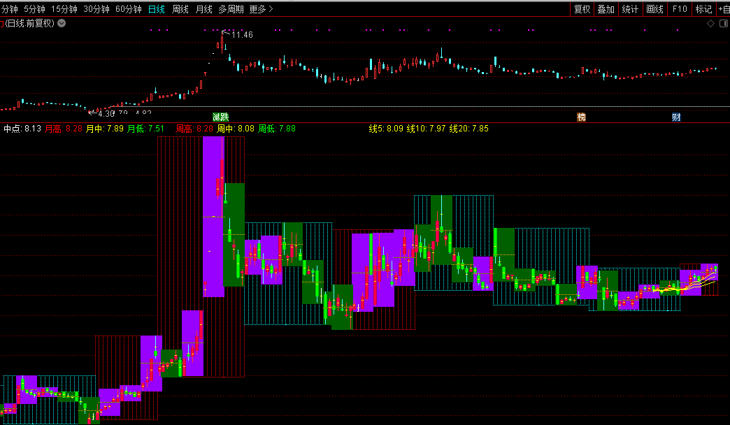 HHH:=STICKLINE(周中,周中,周中,4.1,0),COLORCYAN;