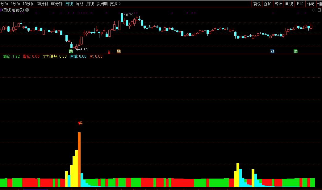 洗缓:IF(VAR8<REF(VAR8,1),VAR8*1.5,0),COLORFFF810,STICK;