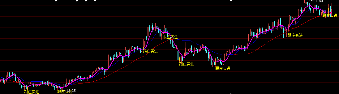DRAWTEXT(FILTER(买=1,5),LOW-0.05,'跟庄买进'),COLORYELLOW;