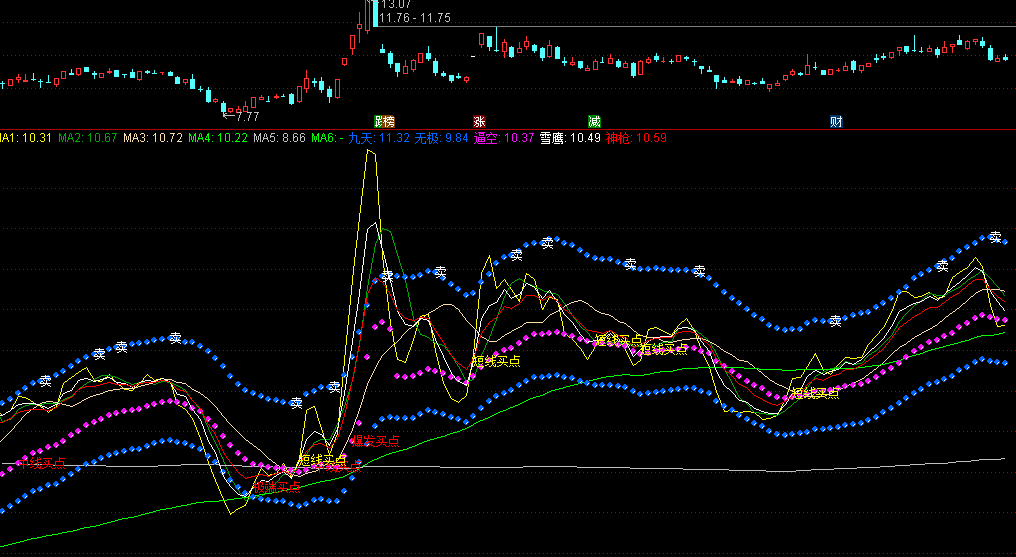 DRAWTEXT(CROSS(MA2,MA1),九天,'卖');
