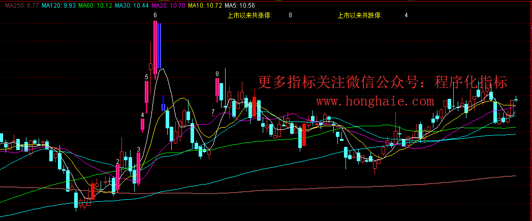 通达信K线标志涨跌停及个数统计图指标公式