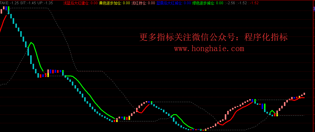 绿色逐步减仓:0,COLORGREEN,NODRAW;{需要编写选股关注微信公众号:程序化指标}