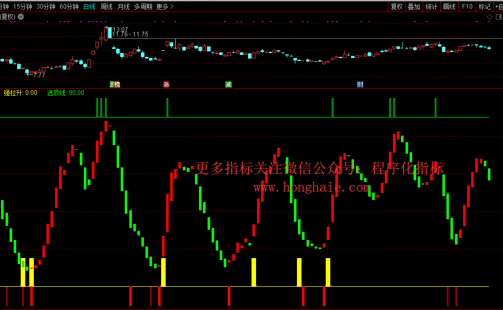 D:=MA(K,3);{更多指标关注微信公众号:程序化指标}