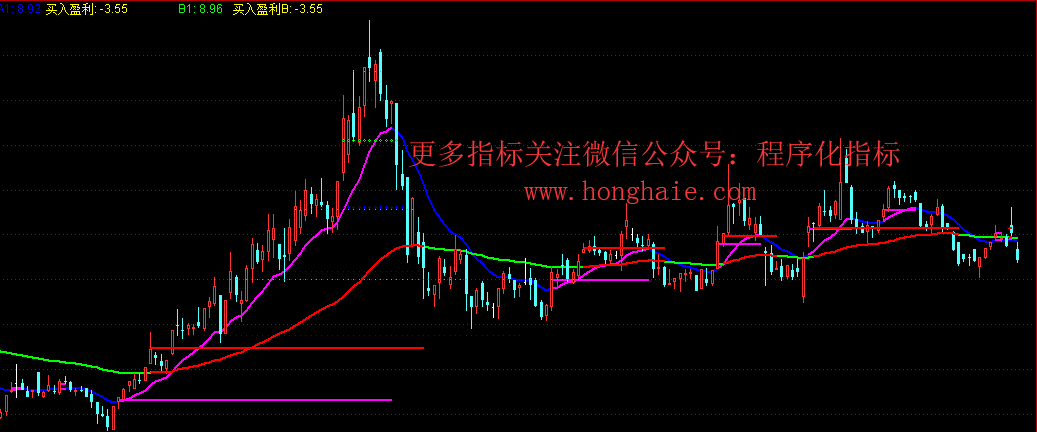 DRAWTEXT_FIX(1,0.02,0,0,'☆微信公众号:(程序化指标) ☆'),COLORRED;