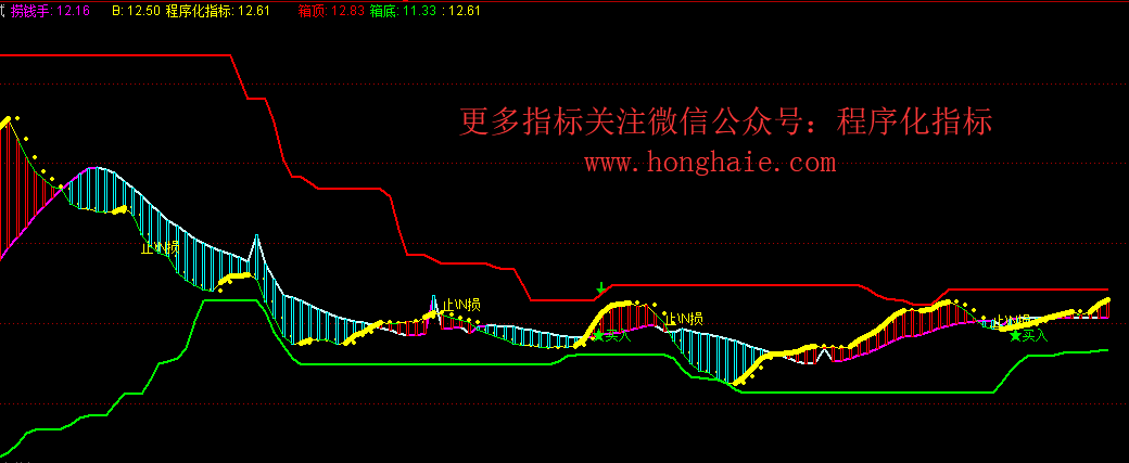DRAWTEXT_FIX(1,0.02,0,0,'☆微信公众号:(程序化指标) ☆'),COLORRED;