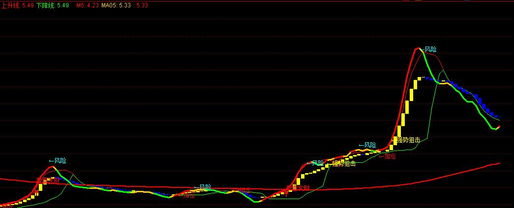 DRAWTEXT(减仓,HIGH*1.02,'←风险'),COLORCYAN;