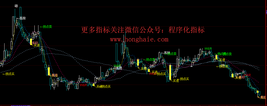 DRAWTEXT_FIX(1,0.02,0,0,'☆微信公众号:(程序化指标) ☆'),COLORRED;