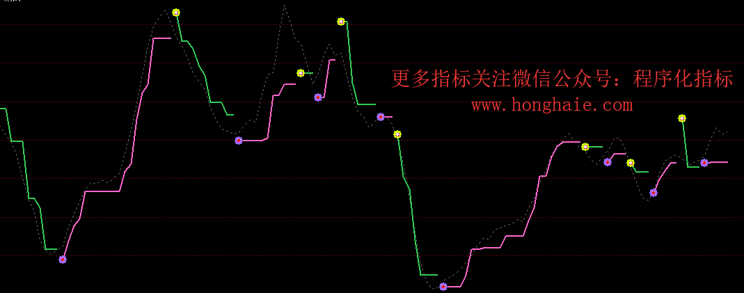 Y:=REF(X,T2);DRAWTEXT_FIX(1,0.02,0,0,'☆微信公众号:(程序化指标) ☆'),COLORRED;