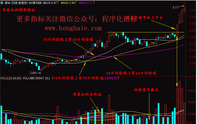 季价托相对于月价托来说有更好的稳定性,一般庄家建仓的周期在一个季度,所以用季价托来监视股价底部,可通过某些特定图形来捕捉庄股的机会!