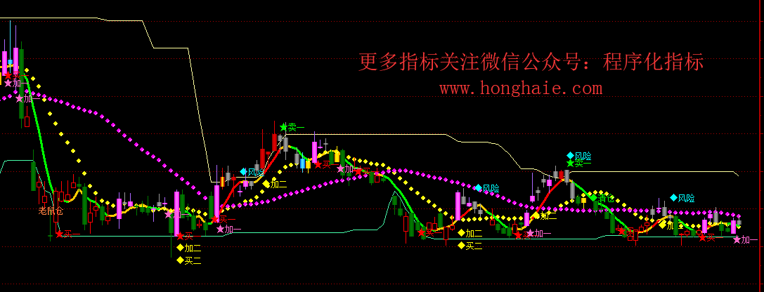 DRAWTEXT(减仓,HIGH*1.02,'◆风险'),COLORCYAN;