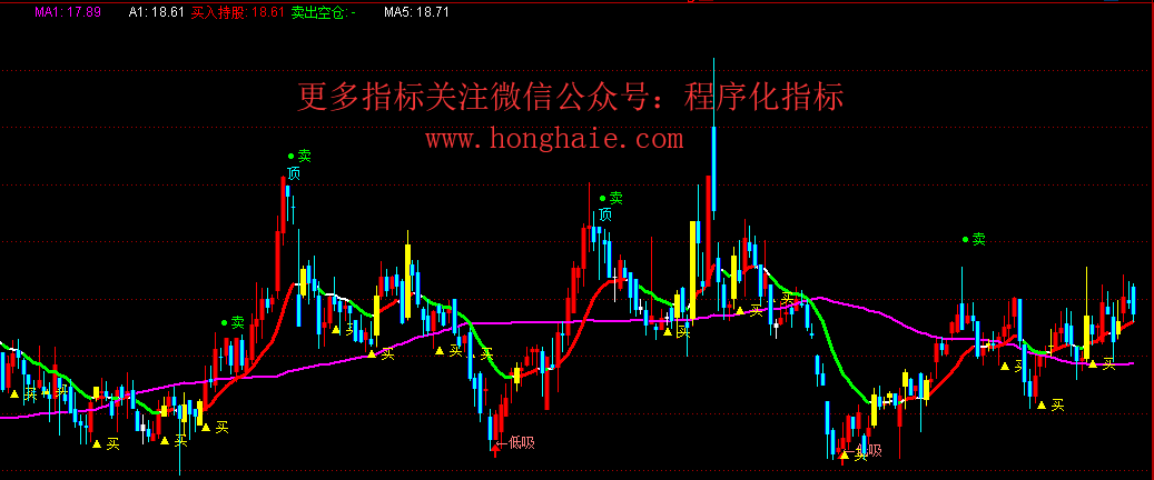 DRAWTEXT_FIX(1,0.02,0,0,'☆微信公众号:(程序化指标) ☆'),COLORRED;