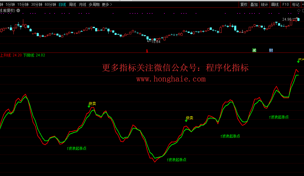 下降线:EMA(C,5),COLOR00FF00,LINETHICK2;{ WWW.HONGHAIE.COM}