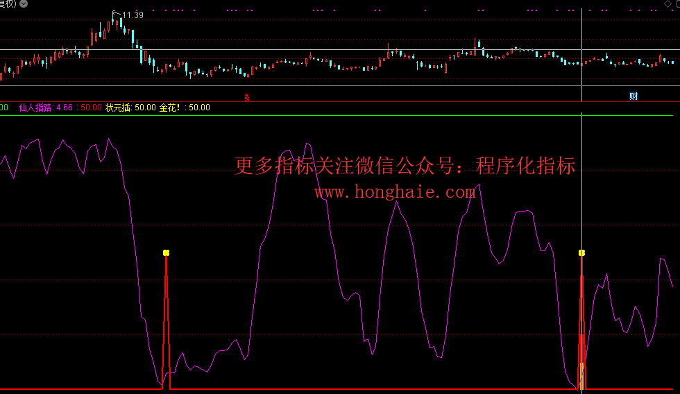 状元插:IF(CROSS(皇榜公布,2),50,DRAWNULL),CROSSDOT,LINETHICK6,COLORYELLOW;