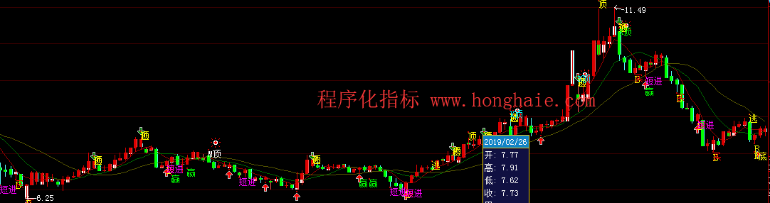 DRAWTEXT(CROSS(J,REF(J+0.01,1)) AND X AND J<20,LOW,'短进'),COLORFF00FF;