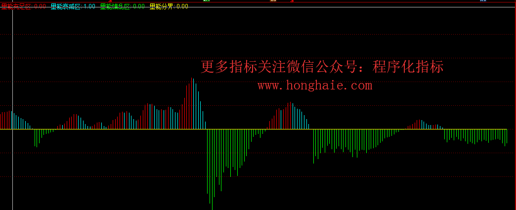 STICKLINE(量能错乱区,0,MIN(KVO,AKVO),0,0),COLORGREEN;