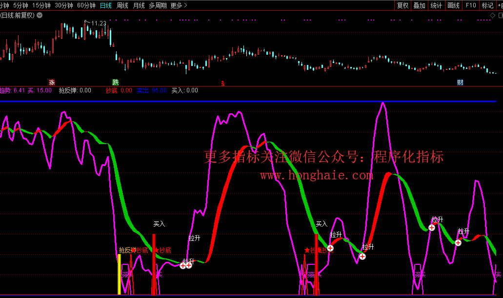 DRAWTEXT(趋势<=10,10,'买'),COLORFF00FF;