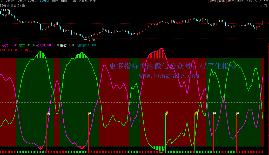 DRAWTEXT_FIX(1,0.02,0,0,'☆微信公众号:(程序化指标) ☆'),COLORRED;