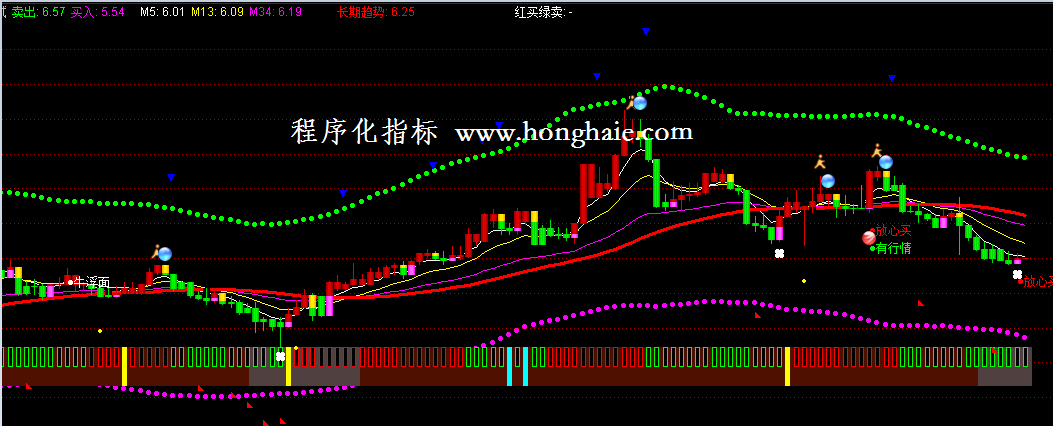 止损:=EMA(C,5),COLORYELLOW,LINETHICK1;{红持股绿持币黄观望}