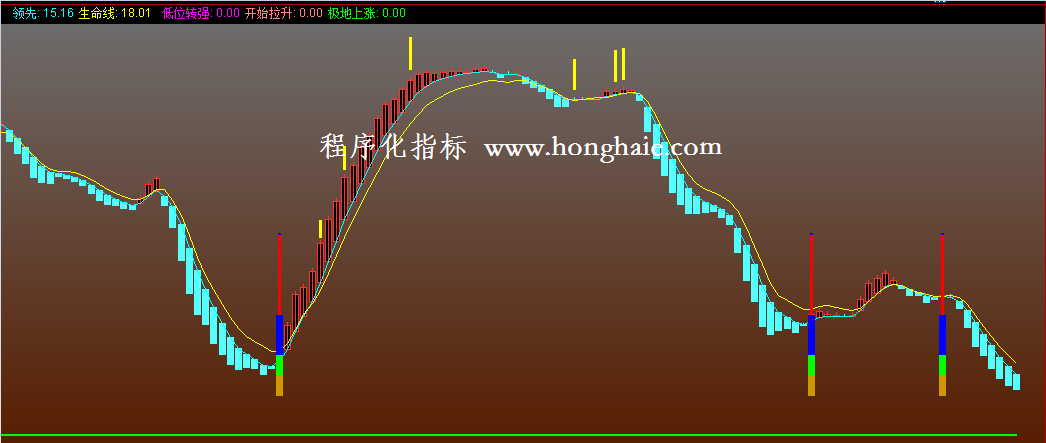 极地上涨:IF(A6,领先,0),COLORGREEN,LINETHICK2;