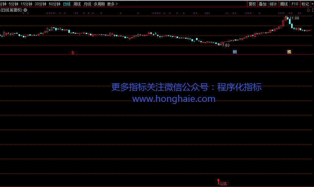 DRAWTEXT(入,L*1.0021,'-见底'),COLORLIMAGENTA;