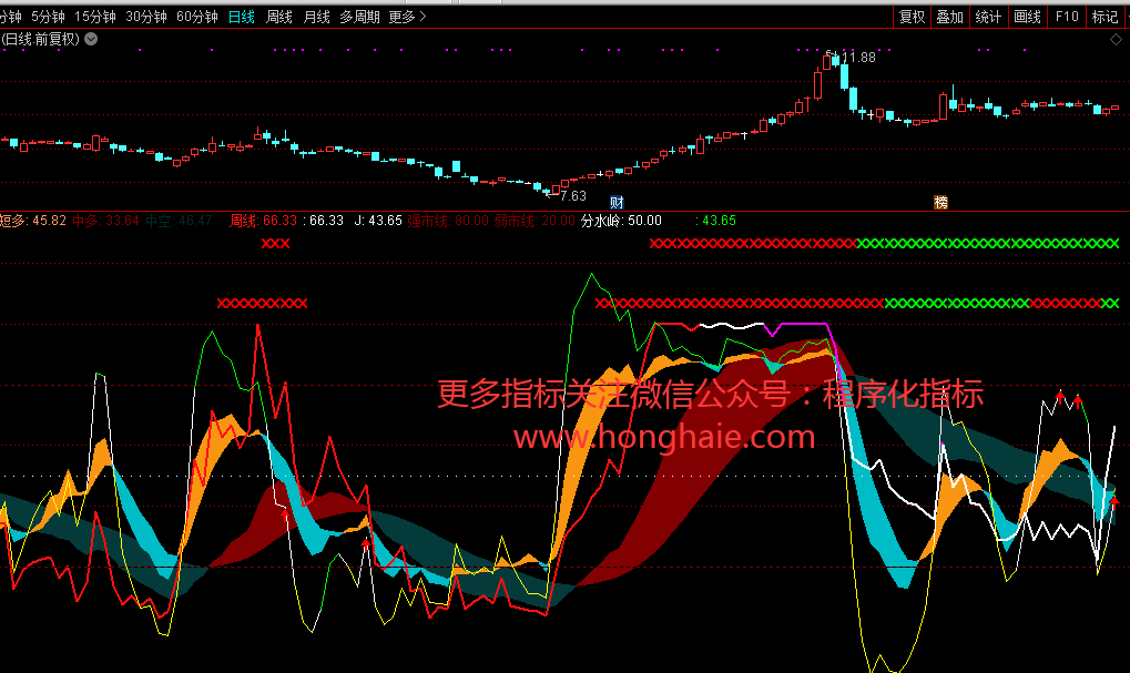 通达信中短期多空副图指标公式
