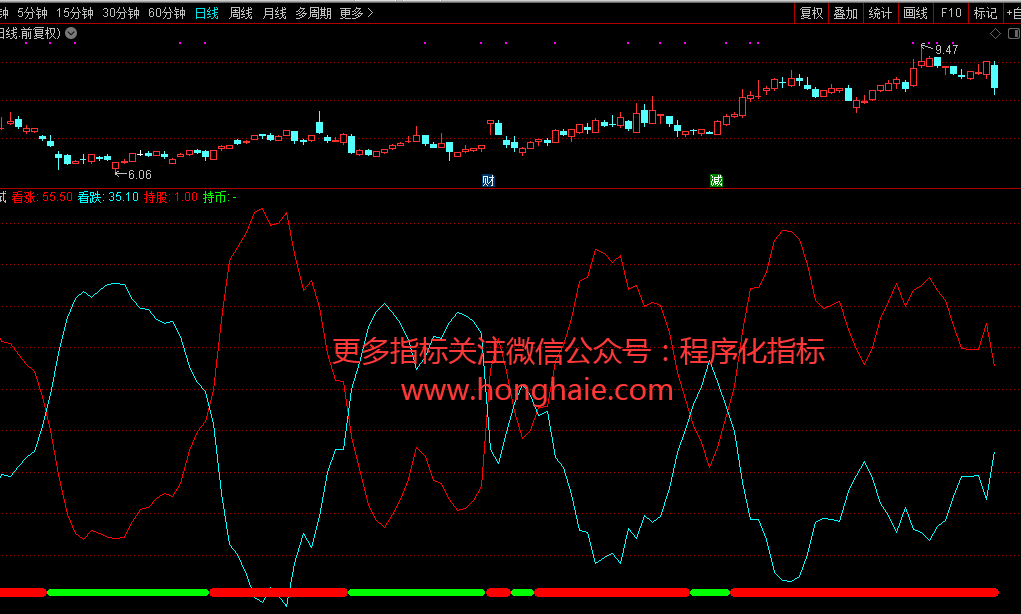 持股:IF(看涨>看跌,1,DRAWNULL),COLORRED,LINETHICK9;