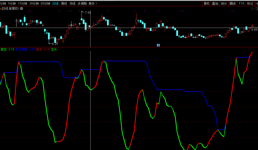 空头:IF(做空<REF(做空,1),做空,DRAWNULL),COLORGREEN,LINETHICK3;