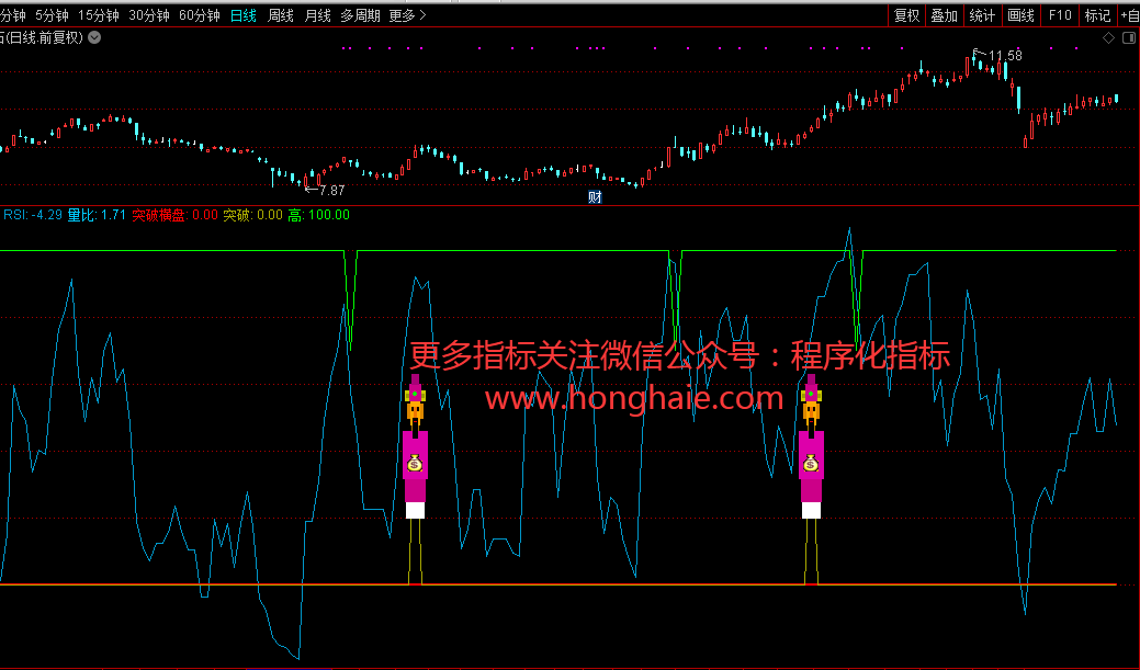 DRAWTEXT_FIX(1,0.02,0,0,'☆微信公众号:(程序化指标) ☆'),COLORRED;