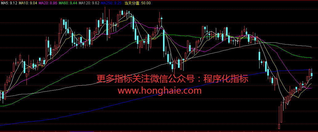 DRAWTEXT_FIX(1,0.02,0,0,'☆微信公众号:(程序化指标) ☆'),COLORRED;