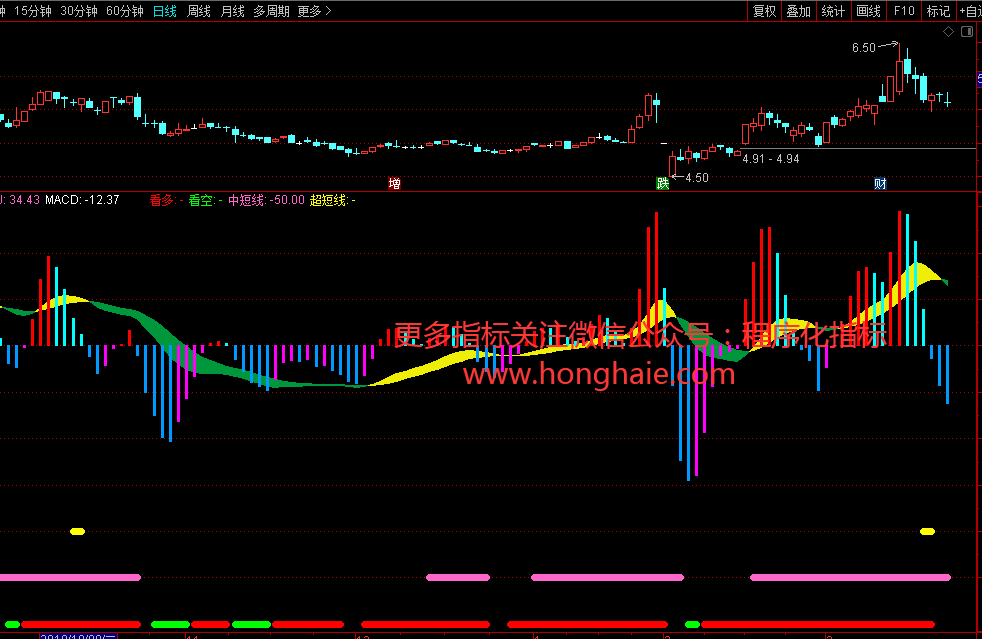 中短线:IF(J>D,-50,DRAWNULL),LINETHICK7,COLORCC66FF;