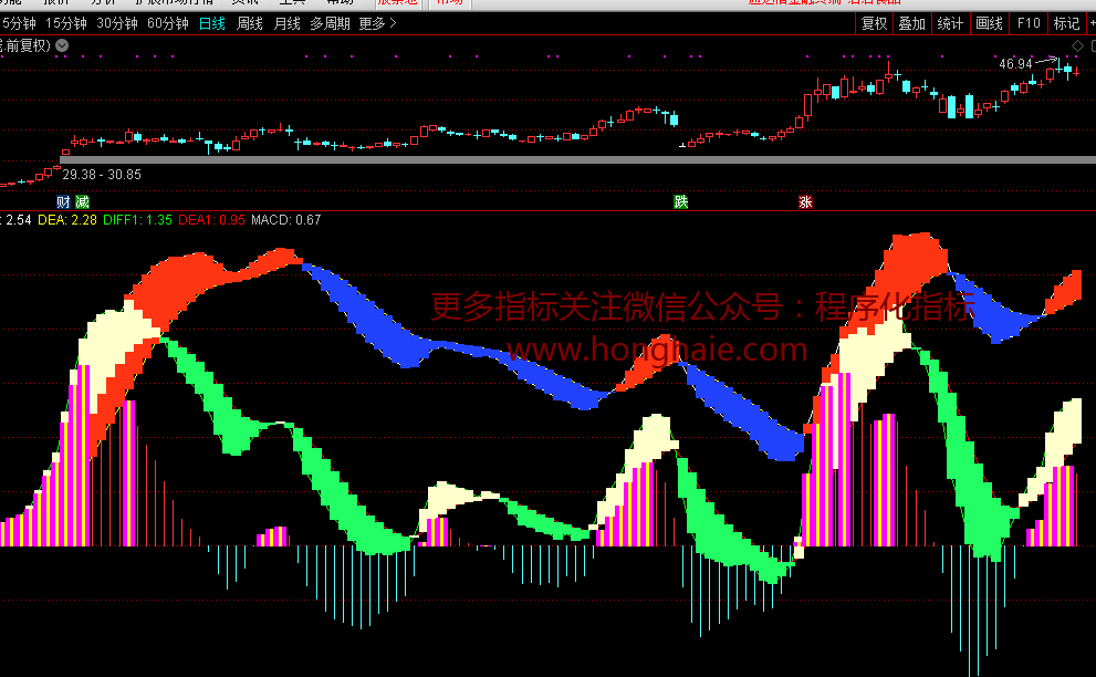 MACD2:=2*(DIFF-DEA),COLORFF00FF ;