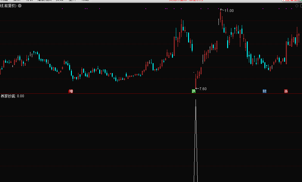 养家抄底:LOW<=XA_86 AND COUNT(LOW<=XA_86,BARSLAST(妖股))=1 AND BARSLAST(妖股)>2;