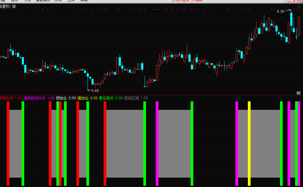 短线区间:COUNT(短线买点,BARSLAST(短线买点)+1)=1 AND COUNT(最后卖点,BARSLAST(短线买点)+1)=0,NODRAW,COLORGRAY;