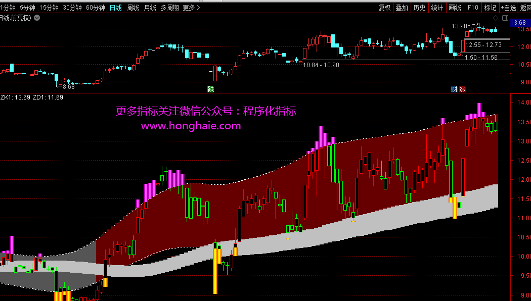 STICKLINE(程序化指标=1,L,ZD1,3.2,0),COLOR0044FF;