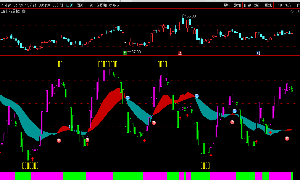 STICKLINE(K>=D,K,D,2,1)COLORFF00FF;