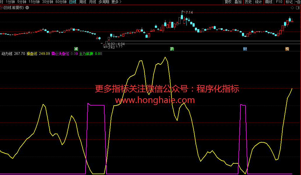 震仓洗盘线:IF(动力线<10,动力线+200,0),LINETHICK2;