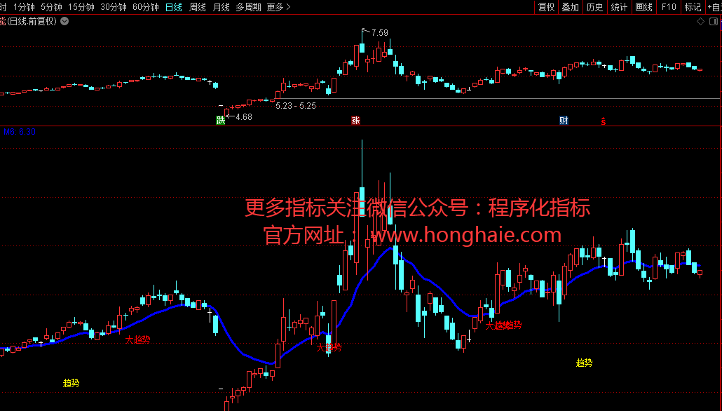 DRAWTEXT(CROSS(M6,M9),M9*0.98,'大趋势'),COLOR0000FF;