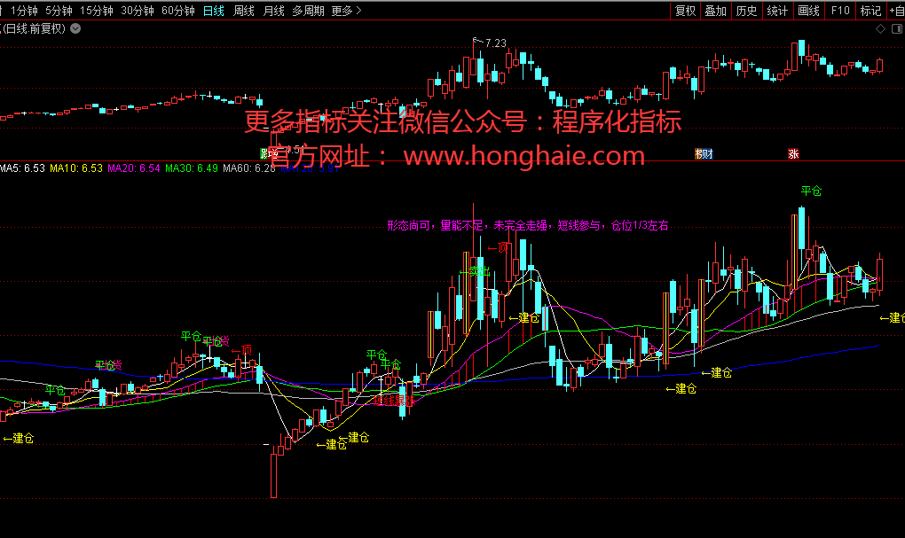 ,'形态尚可,量能不足,未完全走强,短线参与,仓位1/3左右'),COLORFF00FF ;