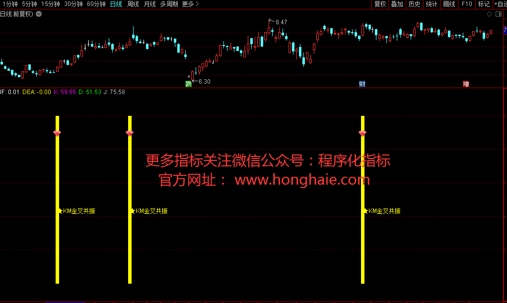 DRAWTEXT(KM,43,'★KM金叉共振'),COLORYELLOW;