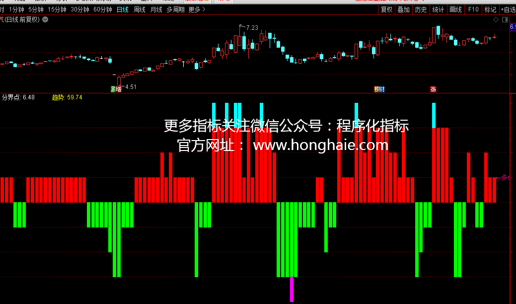 DRAWTEXT_FIX(1,0.02,0,0,'☆微信公众号:(程序化指标) ☆'),COLORRED;