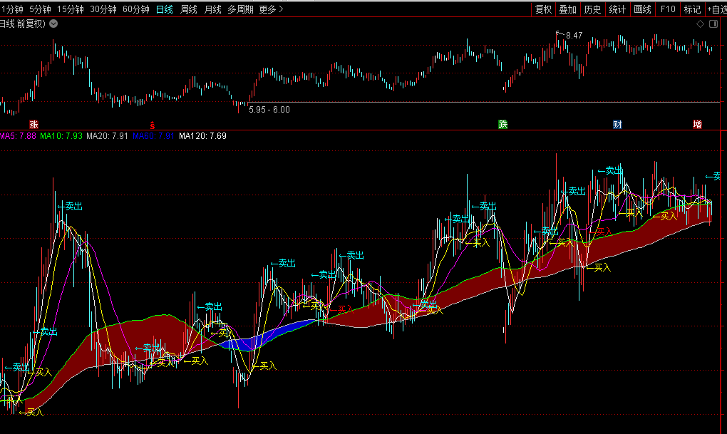 DRAWTEXT((MT1 OR MT2) AND QCUF,LOW*0.99,'←买入'),COLORYELLOW;