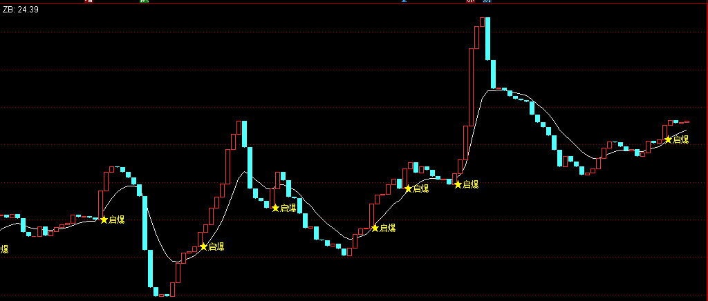 DRAWTEXT(CROSS(C,REF(CXH,1)*1.02) AND CROSS(C,REF(ZB,1)*1.03),REF(CXH,1),'★启爆'),COLORYELLOW;