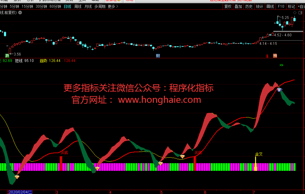DRAWTEXT_FIX(1,0.02,0,0,'☆微信公众号:(程序化指标) ☆'),COLORRED;