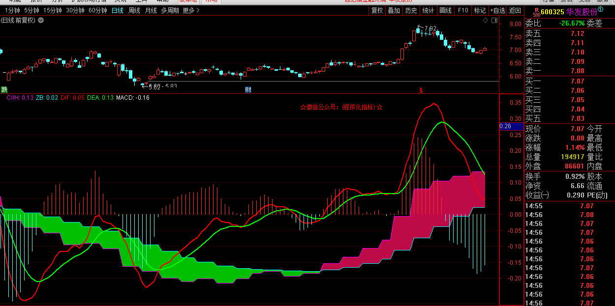 DRAWTEXT_FIX(1,0.62,0,0,'☆微信公众号:(程序化指标) ☆'),COLORRED;