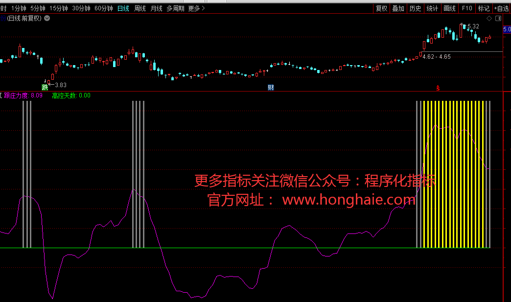 高控天数:BARSLAST(跟庄力3),COLORGREEN;